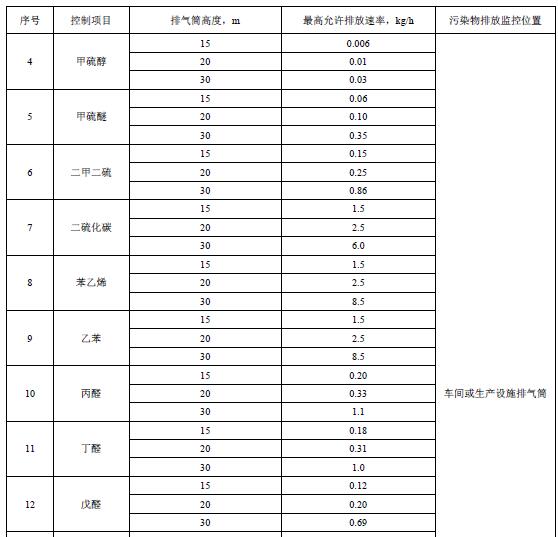 4.3 其他控制要求 4.3.1 排氣筒高度處于表1所列的兩個(gè)高度之間時(shí),惡臭污染物執(zhí)行的最高允許排放速率以內(nèi)插法計(jì)算;排氣筒高度大于30m時(shí),應(yīng)按照30m相應(yīng)的排放限值執(zhí)行。內(nèi)插法見(jiàn)附錄A。 4.3.2 惡臭污染源有多根排放同一污染物的排氣筒時(shí),若其中任意相鄰兩根排氣筒距離小于其幾何高度之和,應(yīng)按附錄B的方法依次計(jì)算等效排氣筒。等效排氣筒惡臭污染物最高允許排放速率應(yīng)滿足表1的相應(yīng)限值。 4.3.3 惡臭污染源責(zé)任主體應(yīng)對(duì)惡臭污染物排放系統(tǒng)和污染防治設(shè)施定期維護(hù)保養(yǎng),并保存相關(guān)記錄。 5 污染物監(jiān)測(cè)要求 5.1 惡臭污染源責(zé)任主體應(yīng)按照《環(huán)境監(jiān)測(cè)管理辦法》等國(guó)家或天津市自行監(jiān)測(cè)及信息公開(kāi)相關(guān)規(guī)定和排污許可證要求,按照HJ 819對(duì)惡臭污染物排污狀況及周?chē)h(huán)境質(zhì)量的影響等情況進(jìn)行自行監(jiān)測(cè),保存原始監(jiān)測(cè)記錄信息并公布監(jiān)測(cè)結(jié)果。 5.2 惡臭污染源責(zé)任主體應(yīng)對(duì)其惡臭污染物控制設(shè)施的運(yùn)行和排放進(jìn)行有效監(jiān)控。 5.3 惡臭污染源排氣筒應(yīng)按照環(huán)境監(jiān)測(cè)管理規(guī)定和GB/T 16157的要求,設(shè)計(jì)、建設(shè)、維護(hù)永久性采樣口、采樣測(cè)試平臺(tái)和排污口標(biāo)志。 5.4 惡臭污染物監(jiān)測(cè)應(yīng)按HJ 905的要求執(zhí)行,并采用表3所列的方法標(biāo)準(zhǔn)進(jìn)行測(cè)定。本標(biāo)準(zhǔn)發(fā)布實(shí)施后,表3所列控制項(xiàng)目如有新發(fā)布的國(guó)家環(huán)境監(jiān)測(cè)分析方法標(biāo)準(zhǔn),其方法適用范圍相同的,也適用于本標(biāo)準(zhǔn)對(duì)應(yīng)控制項(xiàng)目的測(cè)定。