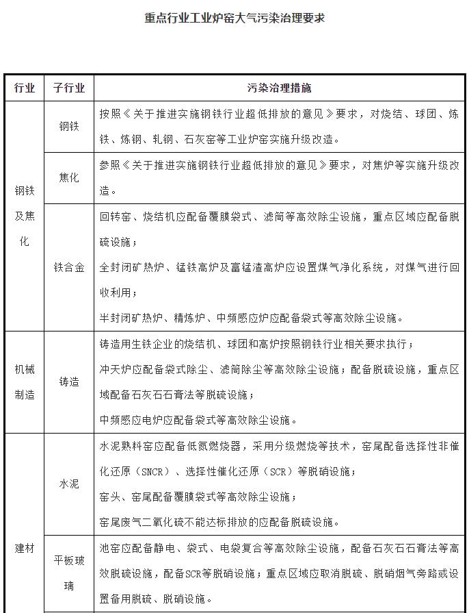 關(guān)于印發(fā)《工業(yè)爐窯大氣污染綜合治理方案》的通知