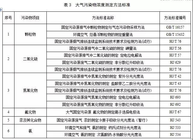 5.2.5 對大氣污染物排放濃度的測定采用表3所列的方法標(biāo)準(zhǔn)。