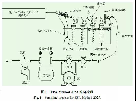 從EPA的定義可以看出,可凝結(jié)顆粒物是混合物。圖1為EPA Method 202A 采樣流程,采用“控制冷凝+慣性撞擊”的方式對(duì)可凝結(jié)顆粒物進(jìn)行捕集。