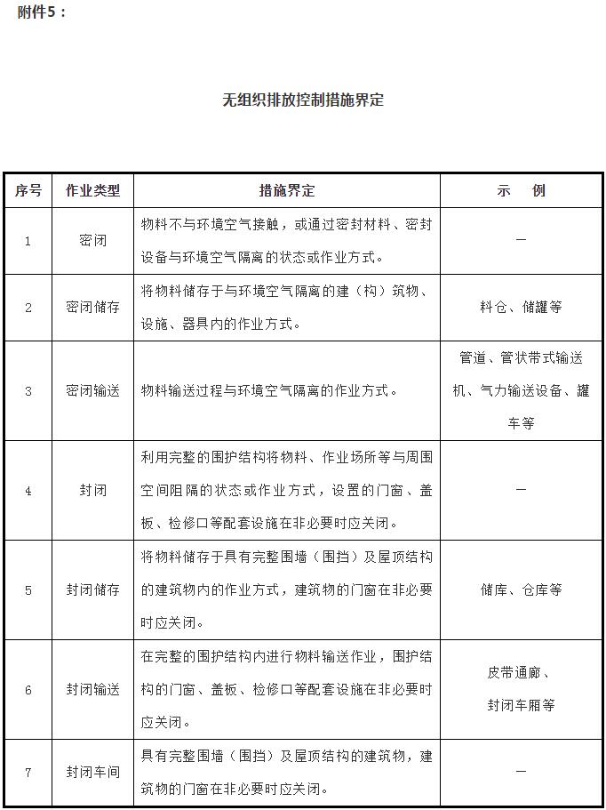 全面加強無組織排放管理。嚴(yán)格控制工業(yè)爐窯生產(chǎn)工藝過程及相關(guān)物料儲存、輸送等無組織排放,在保障生產(chǎn)安全的前提下,采取密閉、封閉等有效措施(見附件5),有效提高廢氣收集率,產(chǎn)塵點及車間不得有可見煙粉塵外逸。生產(chǎn)工藝產(chǎn)塵點(裝置)應(yīng)采取密閉、封閉或設(shè)置集氣罩等措施。煤粉、粉煤灰、石灰、除塵灰、脫硫灰等粉狀物料應(yīng)密閉或封閉儲存,采用密閉皮帶、封閉通廊、管狀帶式輸送機或密閉車廂、真空罐車、氣力輸送等方式輸送。粒狀、塊狀物料應(yīng)采用入棚入倉或建設(shè)防風(fēng)抑塵網(wǎng)等方式進行儲存,粒狀物料采用密閉、封閉等方式輸送。物料輸送過程中產(chǎn)塵點應(yīng)采取有效抑塵措施。